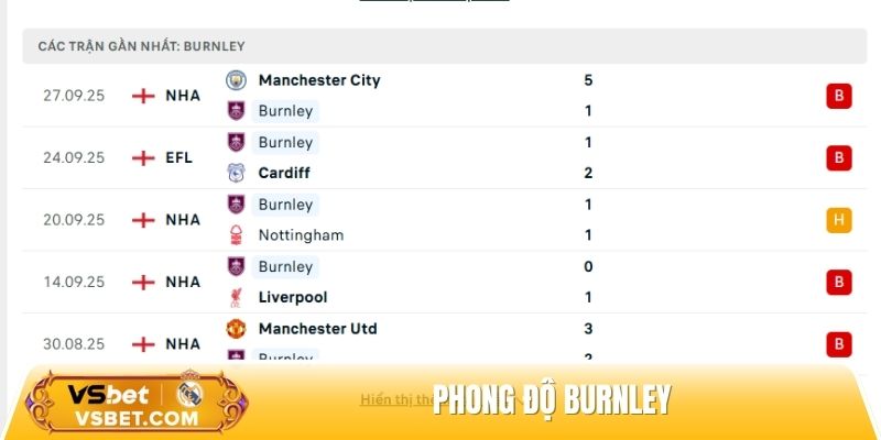 Phong độ Burnley