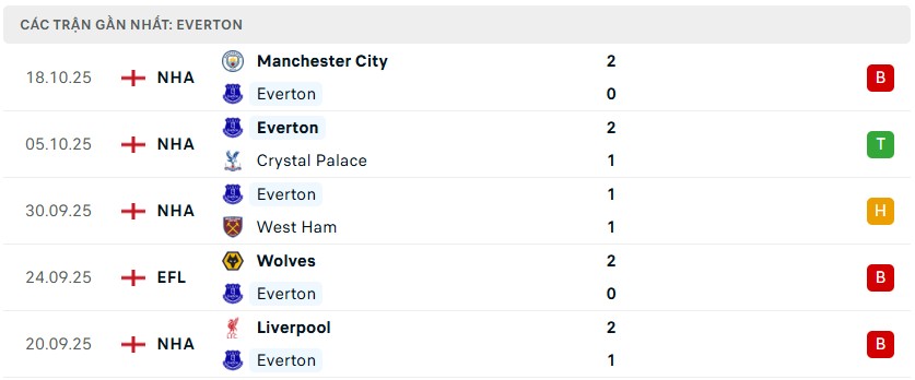 Everton đang bước vào mùa giải với một phong độ khá bất ổn và phần nào phải chịu khá nhiều áp lực về mặt thành tích. Sau 8 vòng đấu tại Premier League 2025 2026, họ ghi trung bình khoảng 1,13 bàn/trận và cũng để thủng lưới khoảng 1,13 bàn/trận. Điều này cho thấy họ vẫn đang gặp khó khăn trong việc chuyển hoá cơ hội và giữ vững hàng thủ. Đội bóng của huấn luyện viên David Moyes có thành tích sân nhà tốt hơn phần nào với 8 điểm sau 4 trận, còn khi làm khách thì chỉ thu về 3 điểm từ 4 trận. Tất nhiên lợi thế sân nhà luôn là thứ Everton tin tưởng dù cho mùa trước họ có làm người hâm mộ thất vọng ngay trên sân đấu quen thuộc.