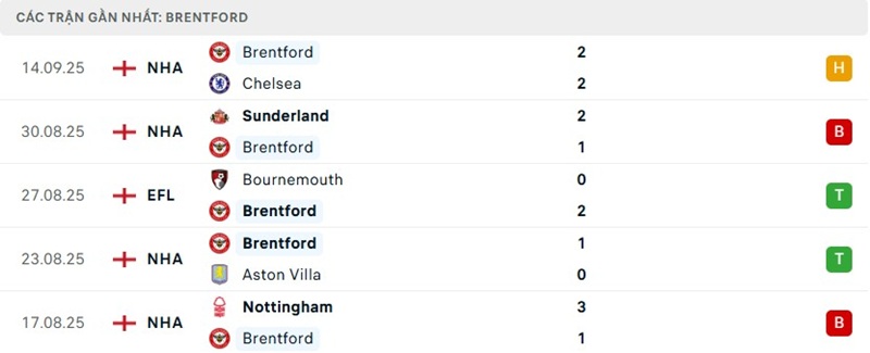 Trong khi đó, Brentford vừa có trận hòa 2-2 đầy cảm xúc trước Chelsea trên sân nhà Gtech. Kevin Schade mở tỷ số, và Carvalho đã tỏa sáng ở phút bù giờ 90+3 để giữ lại 1 điểm trên bảng xếp hạng. Dù vậy, màn trình diễn của đội bóng dưới thời HLV Keith Andrews vẫn để lại nhiều lo ngại, đặc biệt sau thất bại cay đắng 1-2 trước Sunderland ở vòng 3 khi thủng lưới ở phút 96. Việc mất HLV Thomas Frank cùng một loạt trụ cột như đội trưởng, thủ môn và hai chân sút chủ lực Mbeumo và Wissa khiến Brentford gặp nhiều khó khăn ở giai đoạn đầu mùa này.