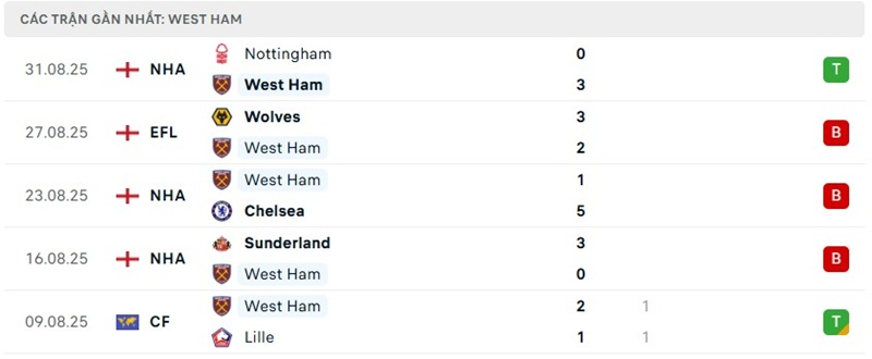 Dẫu vậy, vòng 3 lại mang đến một chút ánh sáng hy vọng. Làm khách trước Nottingham Forest, West Ham chơi bế tắc suốt 80 phút nhưng bất ngờ bùng nổ cuối trận. Sự xuất hiện của Summerville từ băng ghế dự bị giúp đội bóng thay đổi hoàn toàn thế trận, để rồi Bowen, Paqueta và Callum Wilson lần lượt lập công trong 6 phút cuối, đem về chiến thắng 3-0. Ba điểm ấy không chỉ giúp họ thoát khỏi nhóm cuối mà còn tạm thời đứng thứ 16 trên bảng xếp hạng với thành tích 1 thắng – 2 thua, hiệu số 4-8.