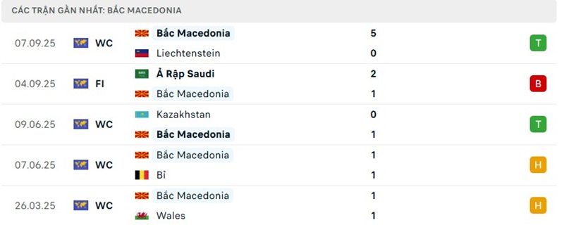 Phong độ của Bỉ vs Bắc Macedonia gần đây