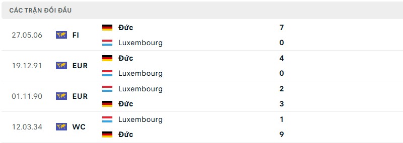 Thành tích đối đầu giữa Đức vs Luxembourg