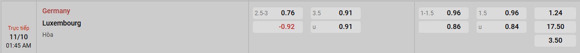 Soi kèo Đức vs Luxembourg qua tỷ lệ